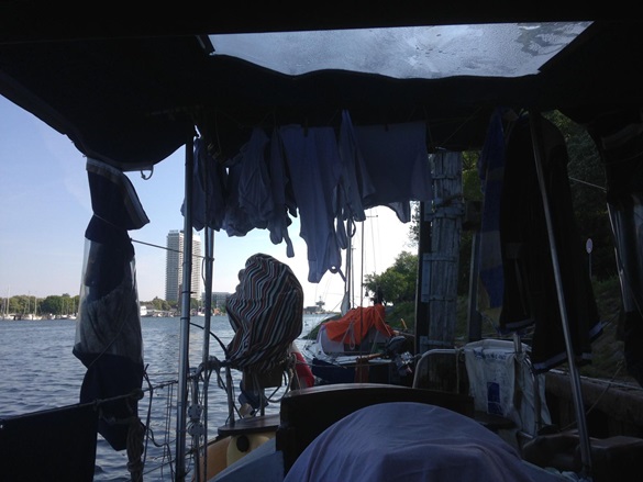 Das Schiff ist in seiner Warteposition angekommen, denn ein zweites Crew-Mitglied ist auf der Anreise, damit die Nachtfahrt nicht alleine vom Skipper gemacht werden muss. Riga wartet!